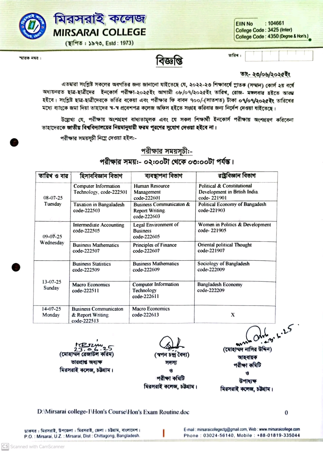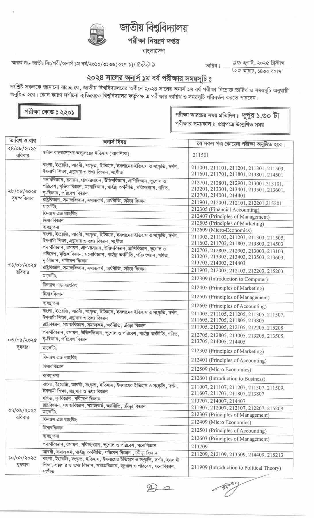 ২০২৪ সালের অনার্স প্রথম বর্ষের পরীক্ষার রুটিন প্রকাশ |