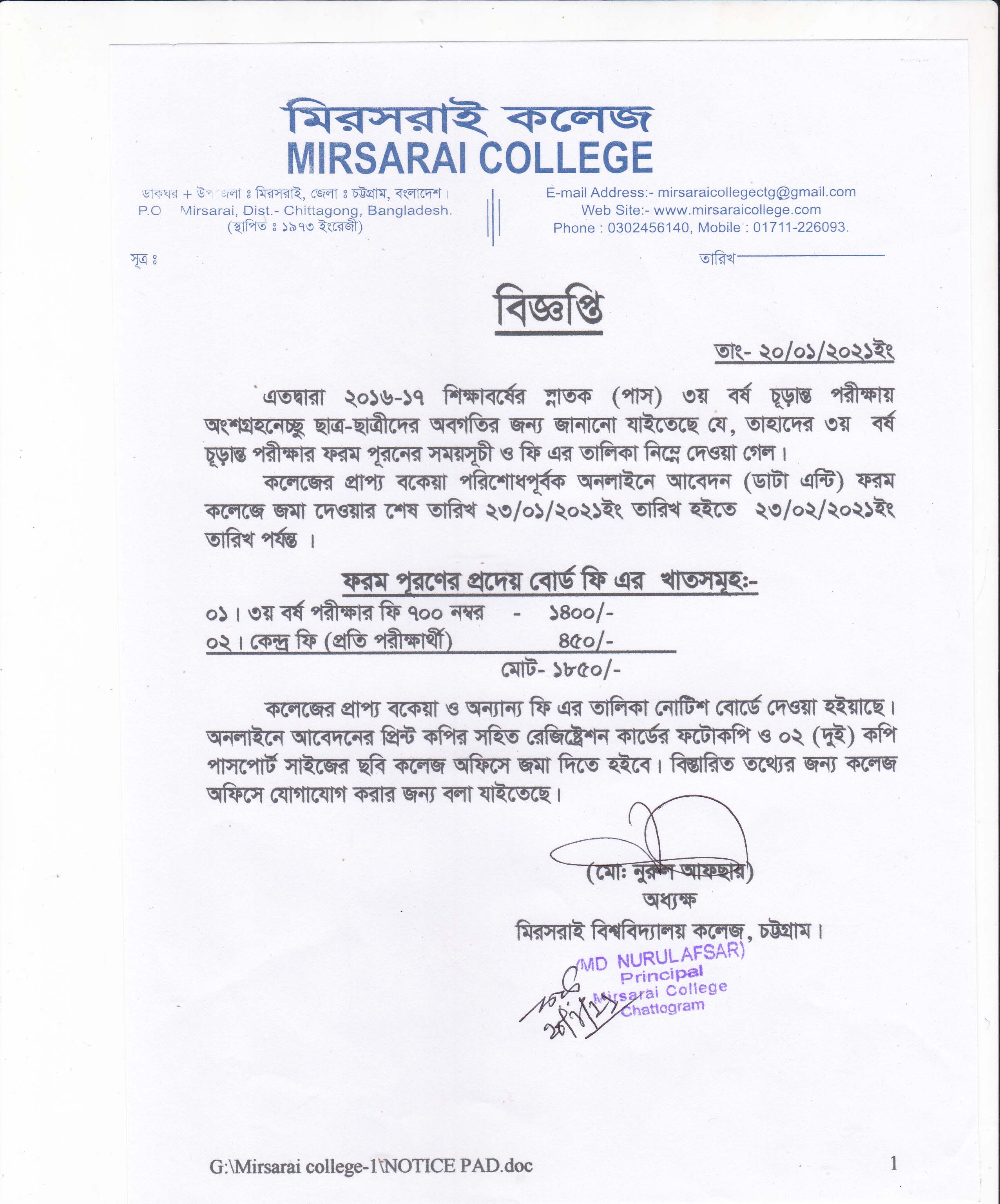 ডিগ্রি (পাস) 3য় বর্ষ ফরম পূরণ সংক্রান্ত বিজ্ঞপ্তি। |