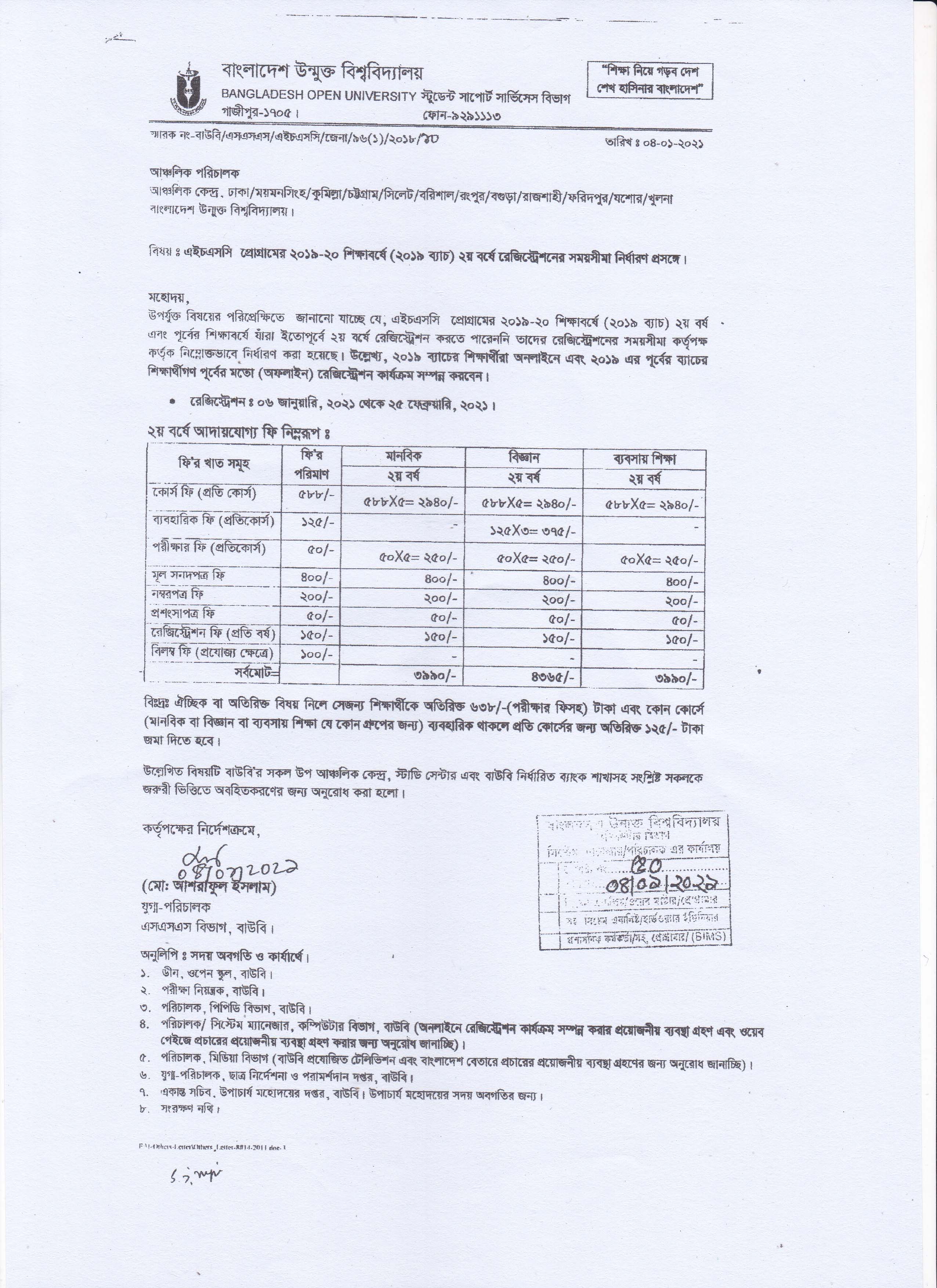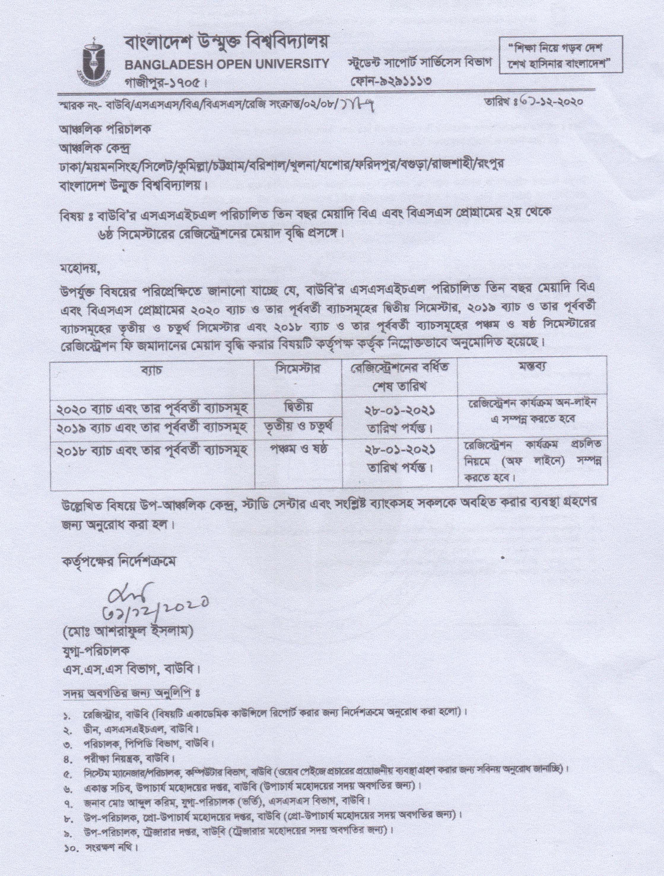 বাউবি বিএ এবং বিএসএস প্রোগ্রামে রেজিস্ট্রেশনের মেয়াদ বৃদ্ধি প্রসংগে |