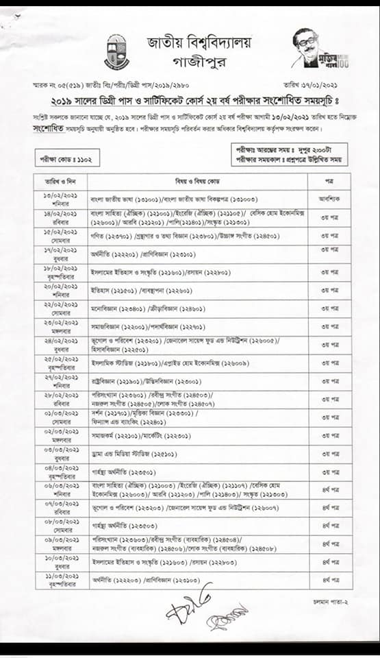 অনার্স দ্বিতীয় বর্ষ ইনকোর্স পরীক্ষার রুটিন প্রকাশ |